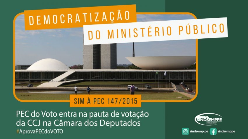 Venho pedir seu apoio para à aprovação da PEC 147/2015 (apensada à PEC 183/2003), que aguarda a inclusão na pauta e deliberação na Comissão de Constituição e Justiça e de Cidadania (CCJC). Para fortalecer os Ministérios Públicos e democratizar as eleições para a escolha do Procurador-Geral de Justiça com a inclusão da participação direta dos servidores efetivos no processo eleitoral. Essas decisões afetam diretamente a vida de milhares de servidores! Contamos com seu apoio! #PEC147/15 #VOTESIM #AprovaPECdoVoto