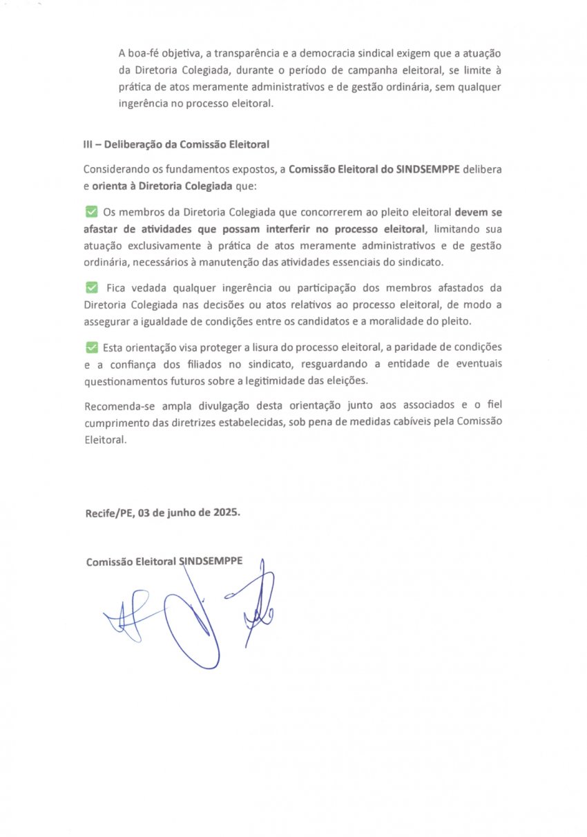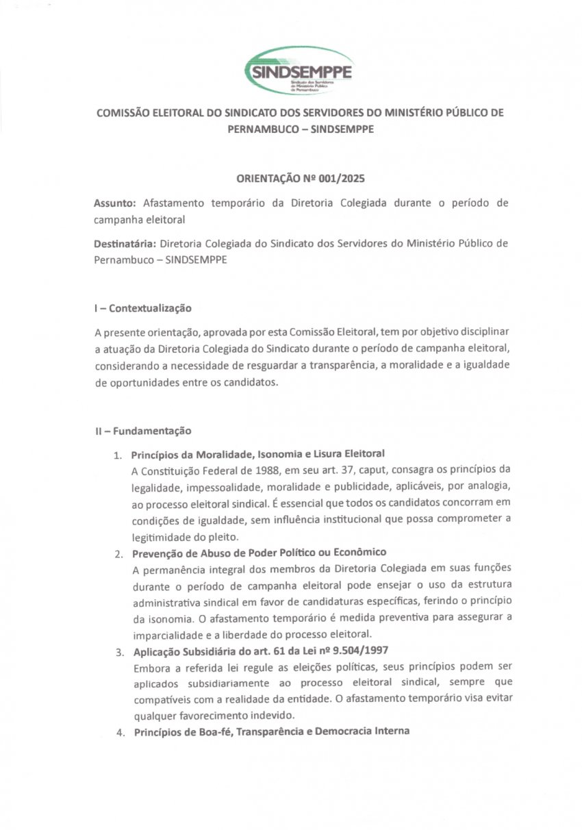 Orientação Nº 001 da Comissão Eleitoral do SINDSEMPPE