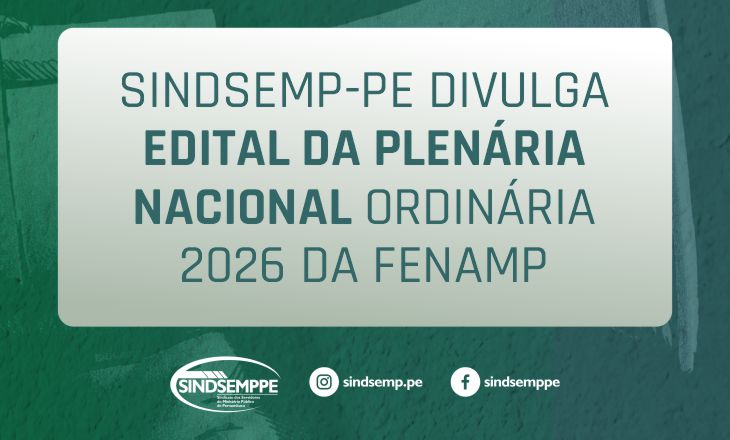 O Sindicato dos Servidores do Ministério Público de Pernambuco – SINDSEMP-PE torna público, hoje, dia 30/03/26, o Edital nº 01/2026 da Federação Nacional dos Servidores dos Ministérios Públicos Estaduais – FENAMP, que convoca a Plenária Nacional Ordinária 2026, a ser realizada nos dias 26 e 27 de abril de 2026, em formato híbrido (presencial e virtual), com início às 08h em ambos os dias.